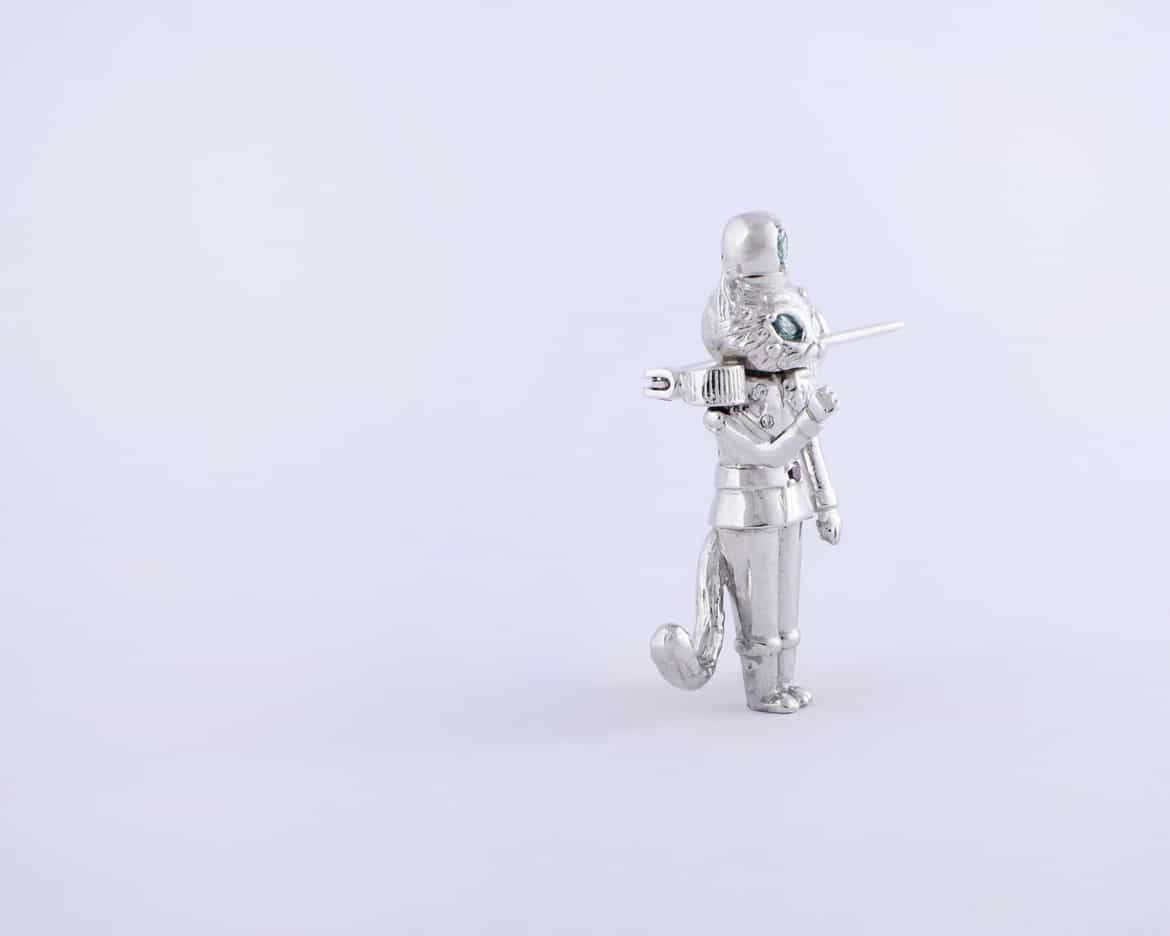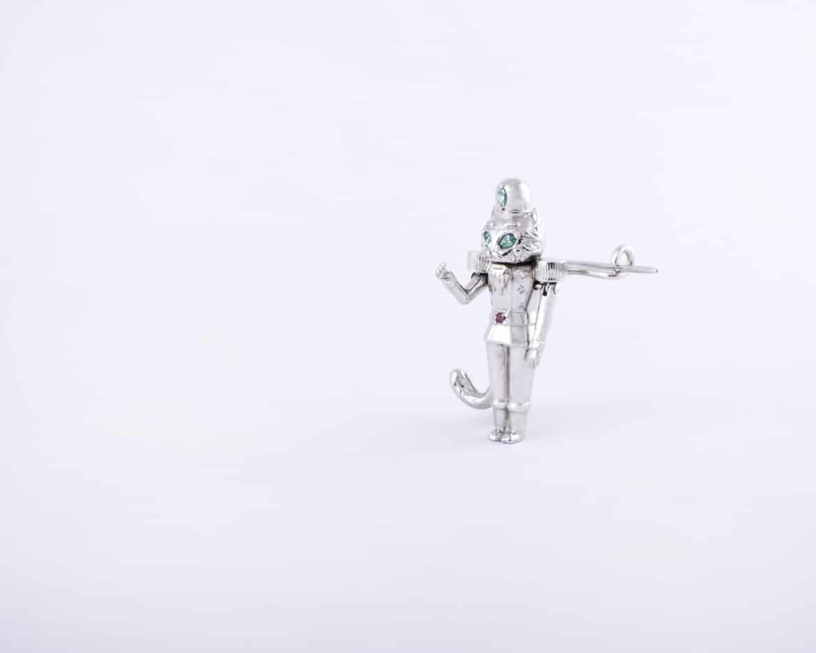 BROCHE de El Catscanueces con brazos articulados, en plata ley 925, ojos, sombrero y cinturón con swarovksi zirconia.
