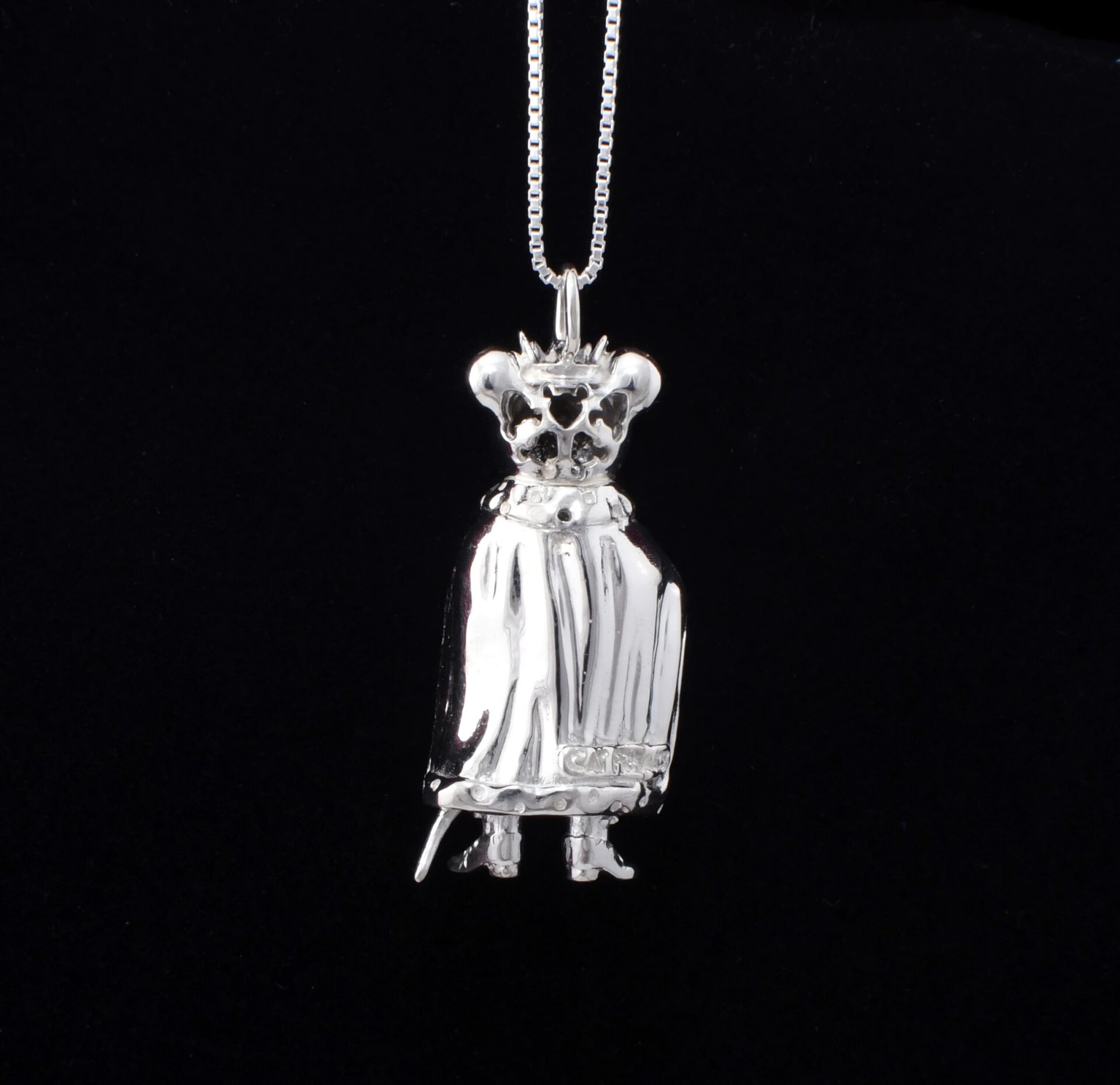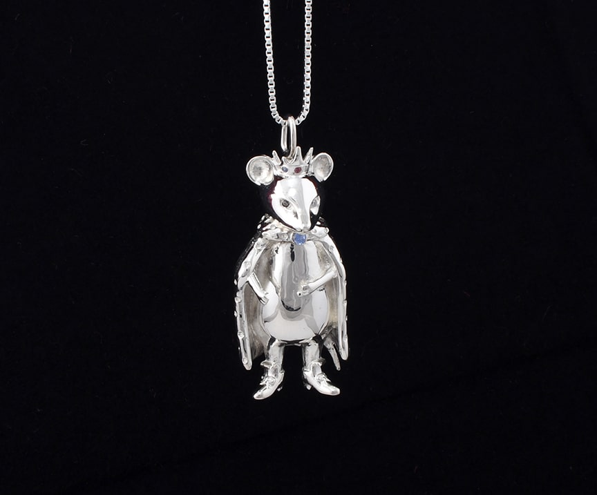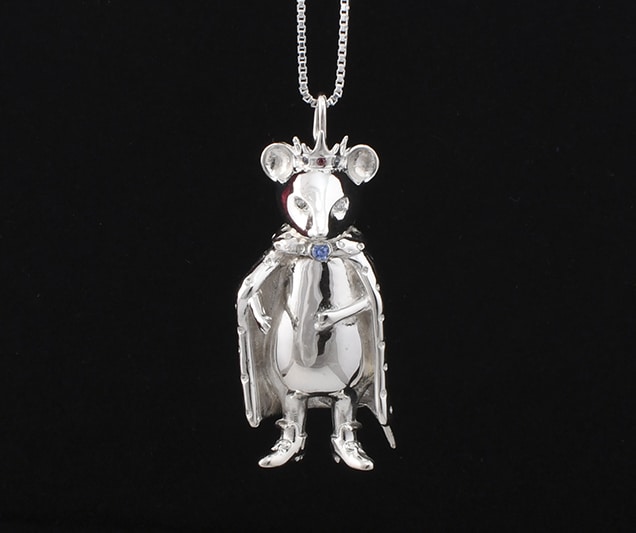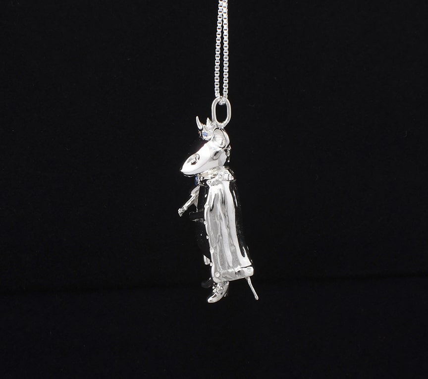 Colgante de Rey Ratón, en plata ley 925, ojos, corona y cuello con swarovksi zirconia.