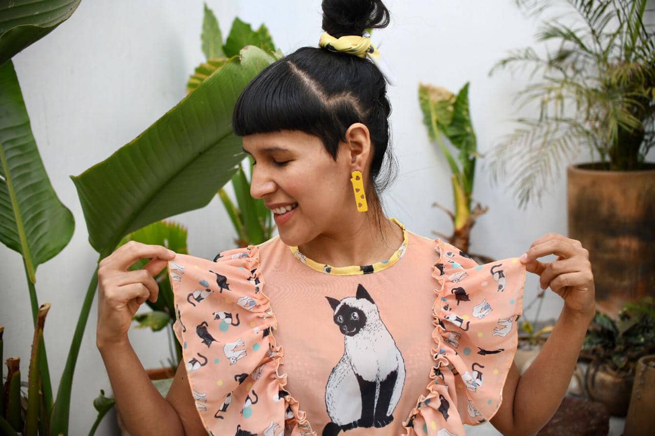 Vestido de Chiffón, estampado original de Cat Freaks e impreso con tintas ecológicas